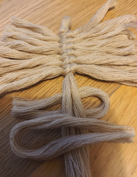 Käykää kurkkaamassa virtuaalikalenterin puolelta myös ohje makrameesulka-korvisten valmistamiseen, tällä samalla tekniikalla!