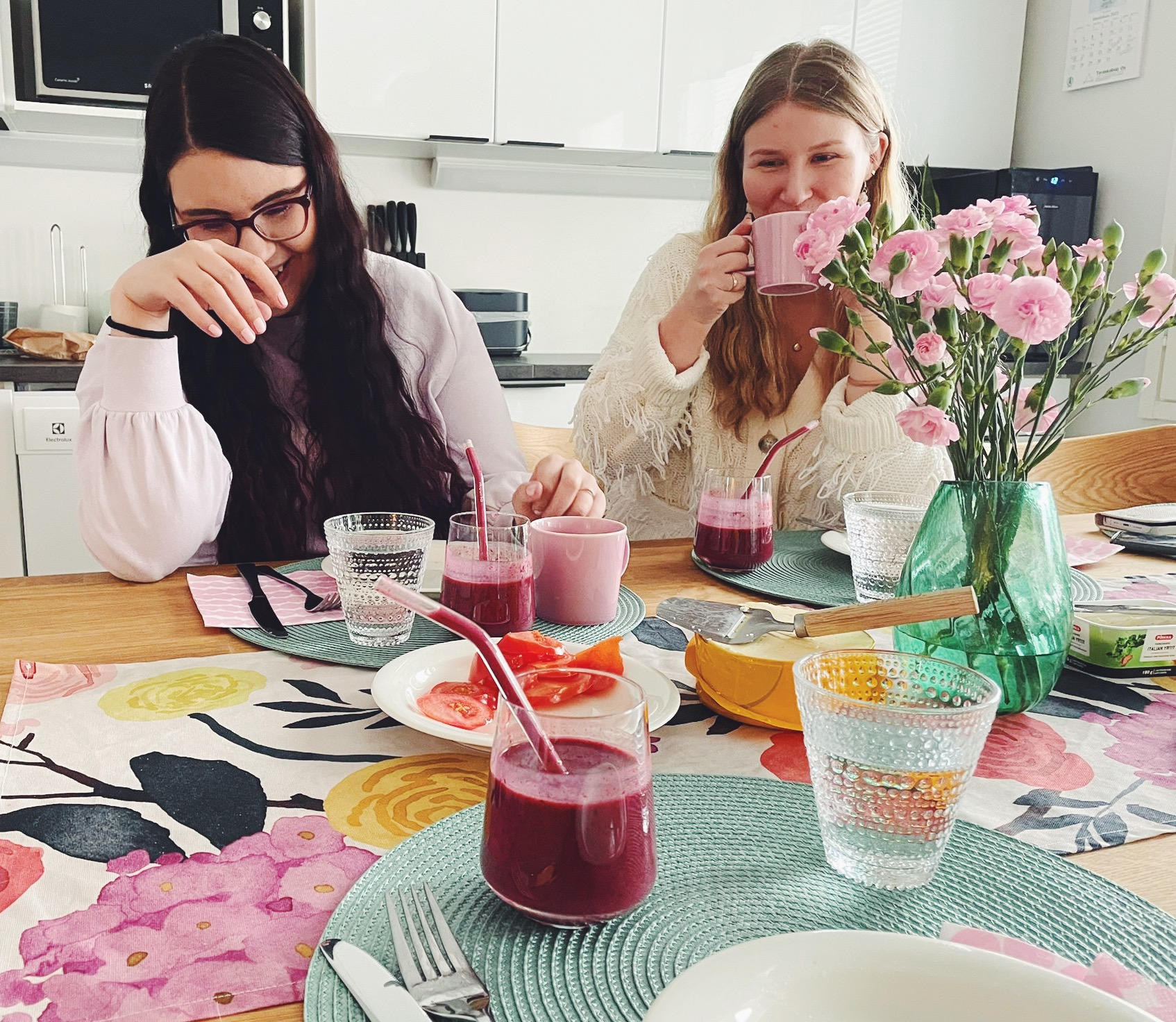 Brunssin jälkeen siirryimme löhöilemään oleskelutilan lattialle ja minulle oli luvassa vielä yksi tehtävä - Tuomaksen sisko oli nimittäin esittänyt Tuomakselle sarjan erilaisia kysymyksiä ja pääsin veikkaamaan, miten Tuomas oli niihin vastannut. Oli hauska uppoutua pohtimaan vähän haastavampiakin kysymyksiä, kuten esimerkiksi: mitkä Tuomaksen mielestä ovat 3 parasta puolta minussa tai mitkä ovat Tuomaksen tulevaisuuden haaveita tällä hetkellä. Yllätin itsenikin vastaamalla melkein kaikkiin kysymyksiin oikein!